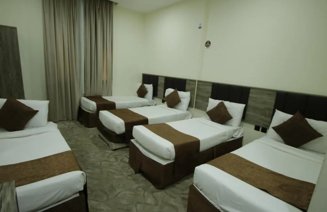 This Mecca hotel is nestled in the Ajyad district, about a 5-minute drive from the restaurant Faisalabad Restaurant. Masjid Al Nur stands near the hotel. The accommodation is situated just 1.5 km from the Abraj Al Bait Mall, and Saptco bus station lies only 1 km away. The Mila Hotel Makkah Mecca is nearly a 20-minute ride from Al Haramin "Mina 1 " rail station.